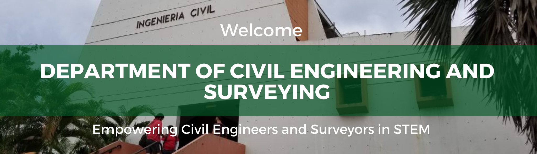 “Welcome to the Department of Civil Engineering and Surveying at the University of Puerto Rico at Mayagüez. Our institutional family with 36 faculties, 24 administrative personnel, 871 undergraduate and 141 graduate students work daily to achieve our mission and pursue our vision through teaching, research, development, and institutional services internally and externally.”