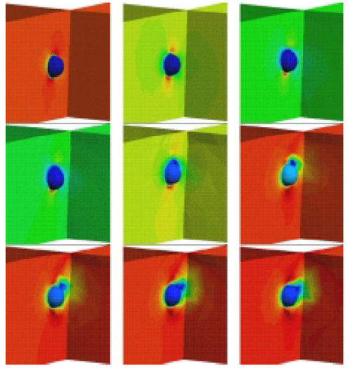 Finite element solution of fluid-structure interaction problems usually requires the update of the analysis mesh as described in previous section. A typical example is the study of movement of an object within a flowing liquid where the fluid mesh needs to be continuously updated accordingly to the changes in position of the object due to the interaction forces.
