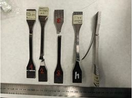 Una vez fabricados los laminados de cribado, se observó que las combinaciones P1,P2,P3,P4,P6 y P7 no soportaron el mecanizado de las probetas de ILSS por corte por chorro de agua, el cual les causaría delaminaciones ejemplificadas en la figura 6. Este fenómeno indica la debilidad de las uniones entre materiales o la presencia de delaminaciones preexistentes al corte, las cuales se vieron amplificadas por la incidencia del agua a presión. Por este motivo, estas combinaciones fueron descartadas de manera inmediata.