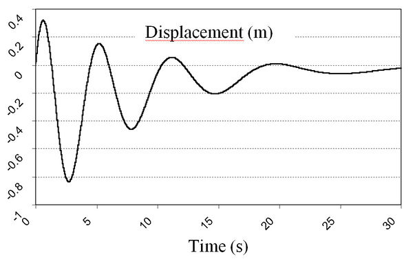 axes due to the forces induced by the fluid. The vertical displacement is constrained by a spring linking the sphere to the ground. An initial vertical velocity of 1m/s for the sphere has been taken.